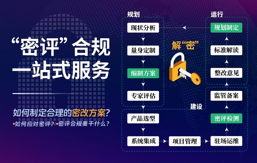 為客戶提供個性化、專業(yè)性的,符合相關(guān)規(guī)定要求的,全流程——密碼技術(shù)解決方案。